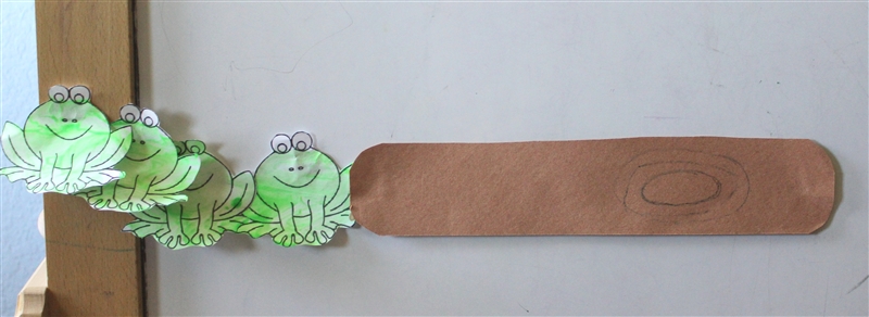 Upon calling out a spatial word, she placed the frogs according to the log. The sticky tack on the back of each frog made them easy for her to move around.