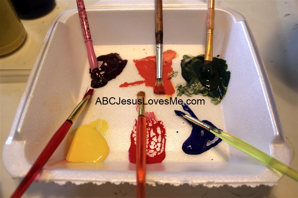 Items Needed: Container, Red/yellow/blue paint, Paint brushes, Paper,