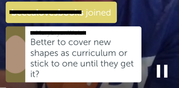 Because Periscope is interactive, in the first broadcast I simply answered the viewers questions. On the second broadcast I shared our favorite preschool Bibles, what I liked about each, and then ideas of how to make the Bible stories interactive with your child. Viewers asked me about learning memory verses, translations of the Bible, and other related questions. I was able to answer each almost immediately with the live format. Yesterday’s broadcast explained how to teach children a new objective (rectangles). (You can see the question posted in the image above.)
