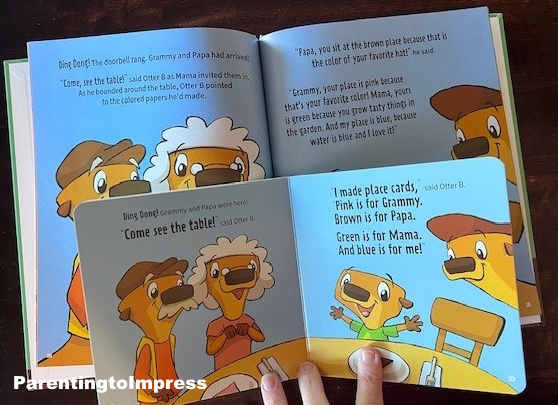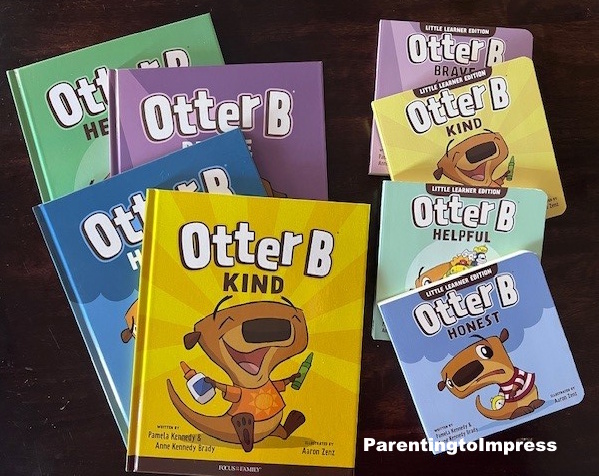 The Otter B series uses an otter’s adventures to focus on biblical character traits such as kindness, honesty, bravery, and helpfulness. I appreciate that the series offers both board books and hardback editions. While the illustrations and storyline are similar, the board books use much simpler text (see image above), making hard concepts accessible for younger children.